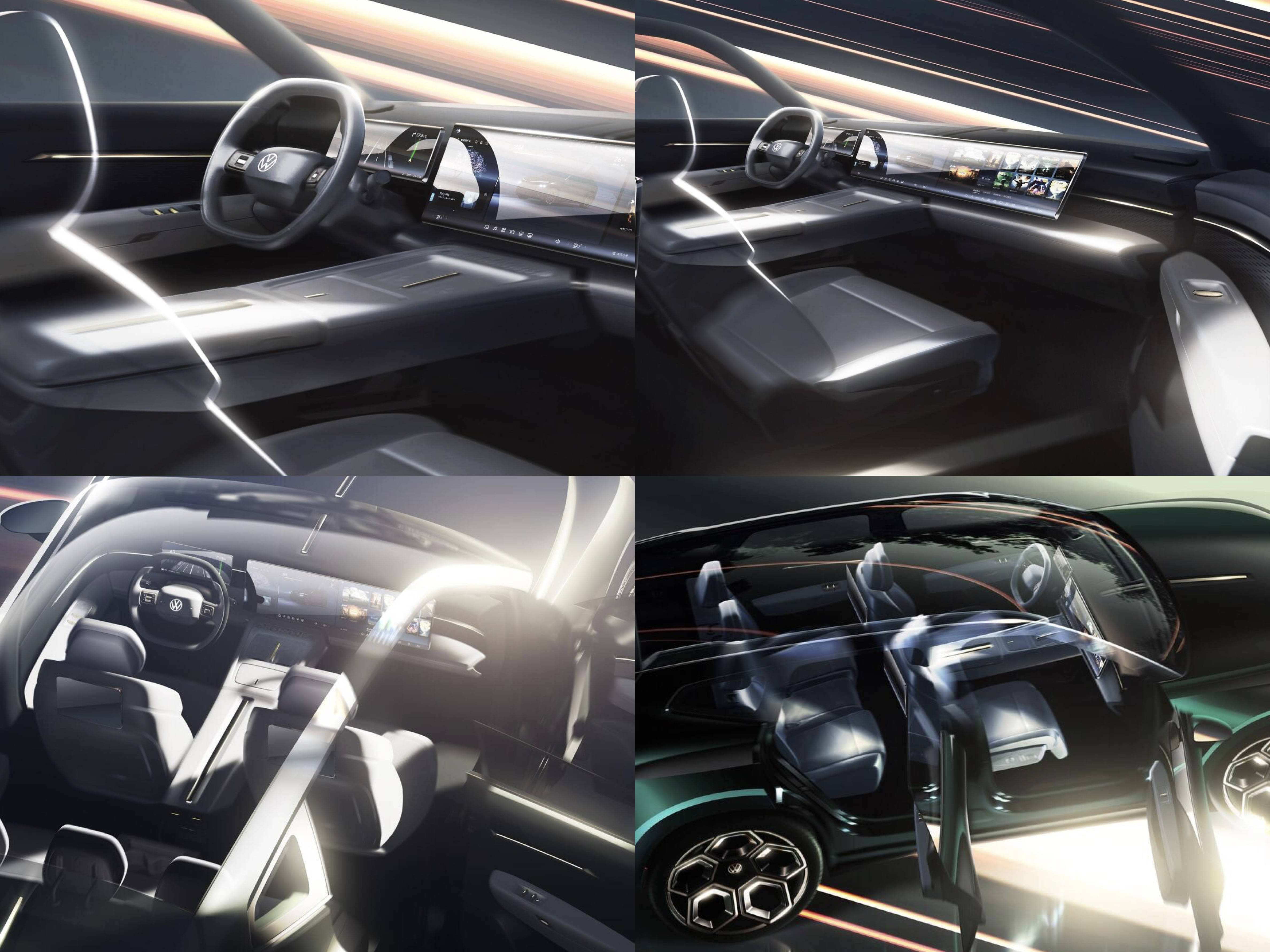 内饰暂未曝光,参考概念车和预告图来看,与众08将采用当下主流的双联屏(中控屏+副驾娱乐屏),以及悬浮式仪表屏,并搭载高通骁龙8295P车机芯片。值得注意的是,与众08由大众安徽与合作打造,不仅内饰设计类似,还将会搭载双图灵AI芯片,算力可达1500TOPS,可实现L2++级纯视觉辅助驾驶,拥有“车位到车位”的辅助驾驶能力。
