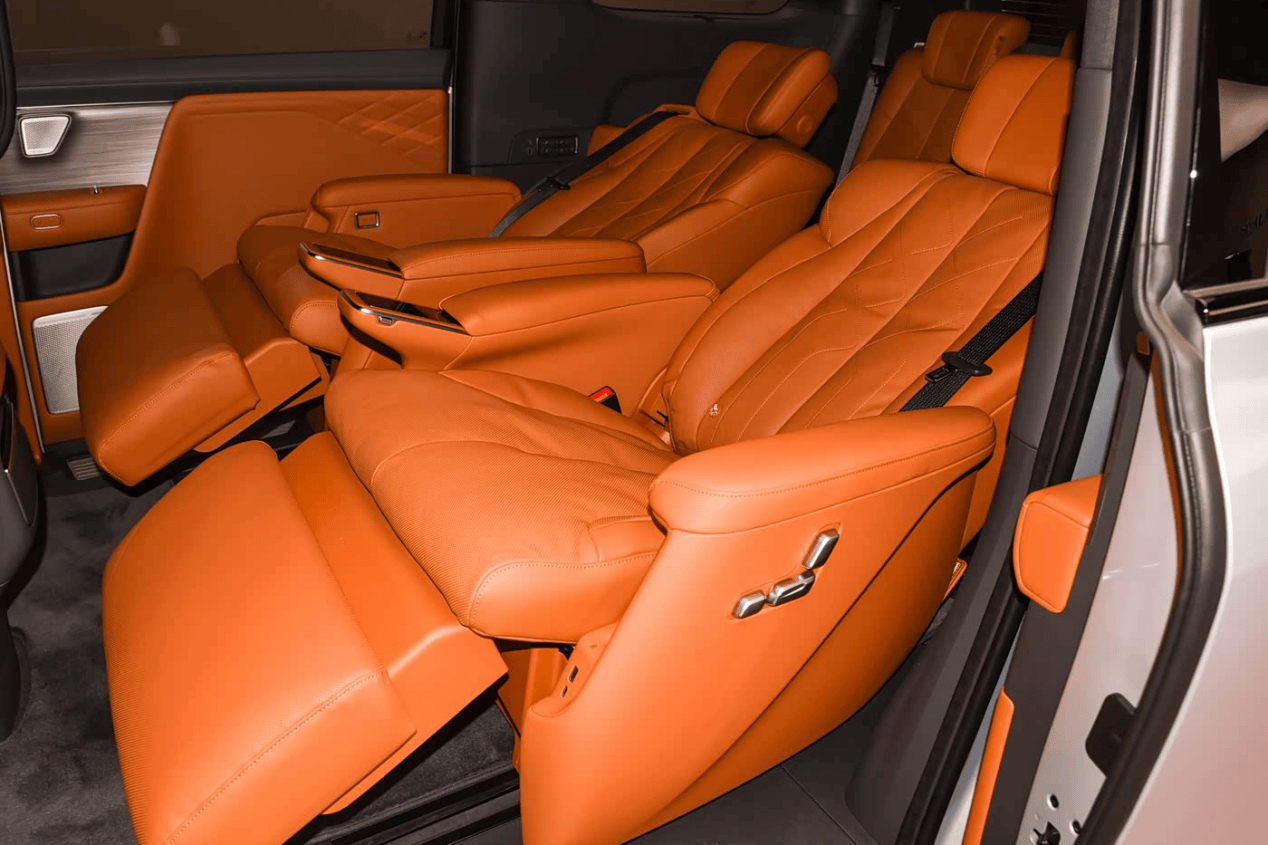 第二排乘客有着非常高的待遇。在这里,你可以挥一挥手就能完成车门开关动作;在这里,车窗配有电动遮阳帘,无论是隐私性还是静谧性都属于上乘品质。与此同时,座椅通风加热按摩、可调腿托、扶手加热等功能在配齐之后,也不由得让人想要安安静静地睡上一路。
