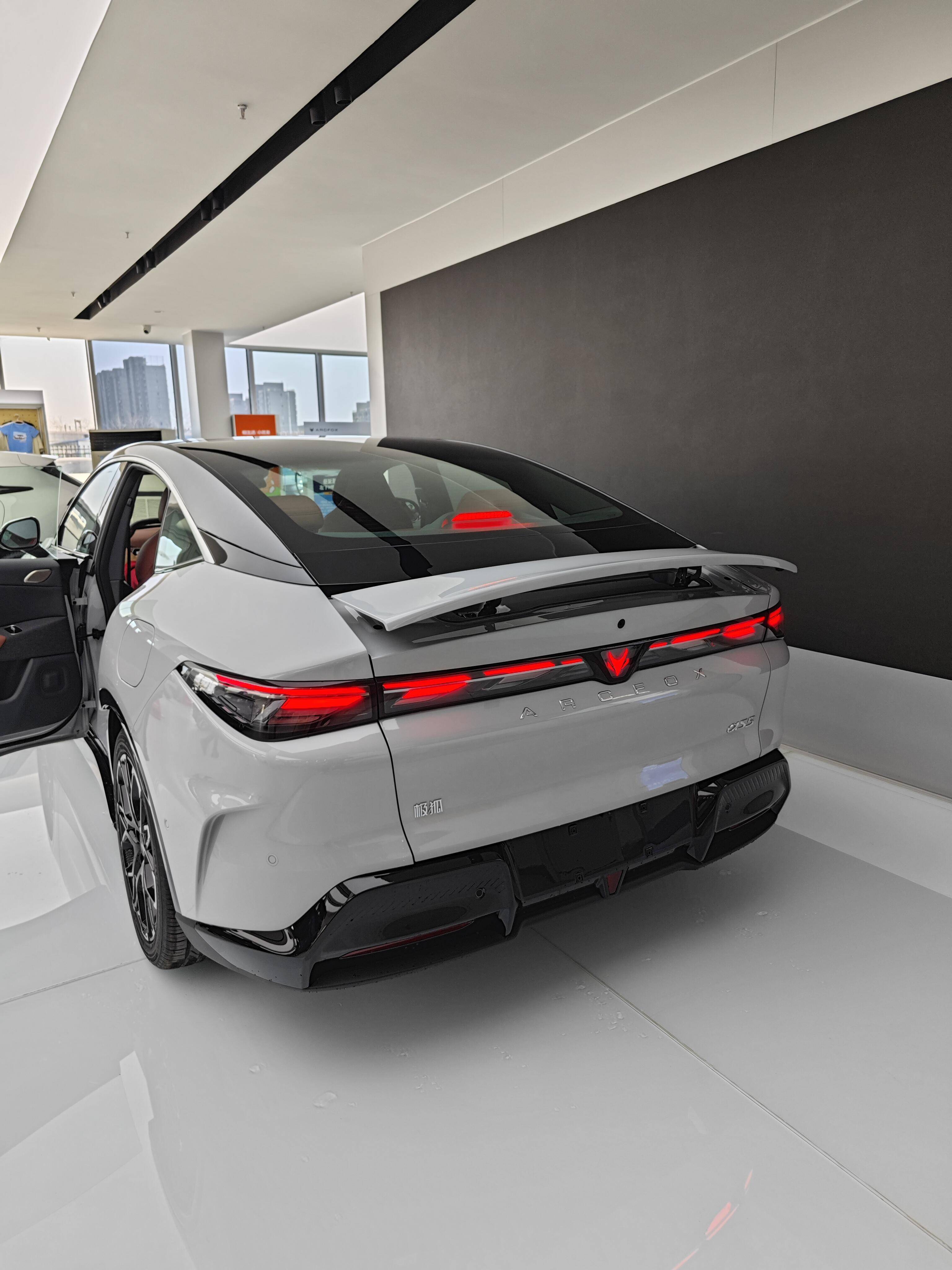 车身尺寸长宽高分别为4886/1930/1480mm,轴距2900mm,相比比亚迪秦L/海豹06DM-i、深蓝L06更大。车身侧面继续采用大溜背造型,主要新增“瓦纳蓝”、“幻影绿”车色,并换装了全新多幅式熏黑轮毂+绿色刹车卡钳,再配合悬浮式车顶、无框车门、智能电动尾翼等,战斗感呼之欲出。而重新设计的后包围加入熏黑扩散器造型,再配合两侧立体的“L”形线条勾勒,继续强调运动气息。