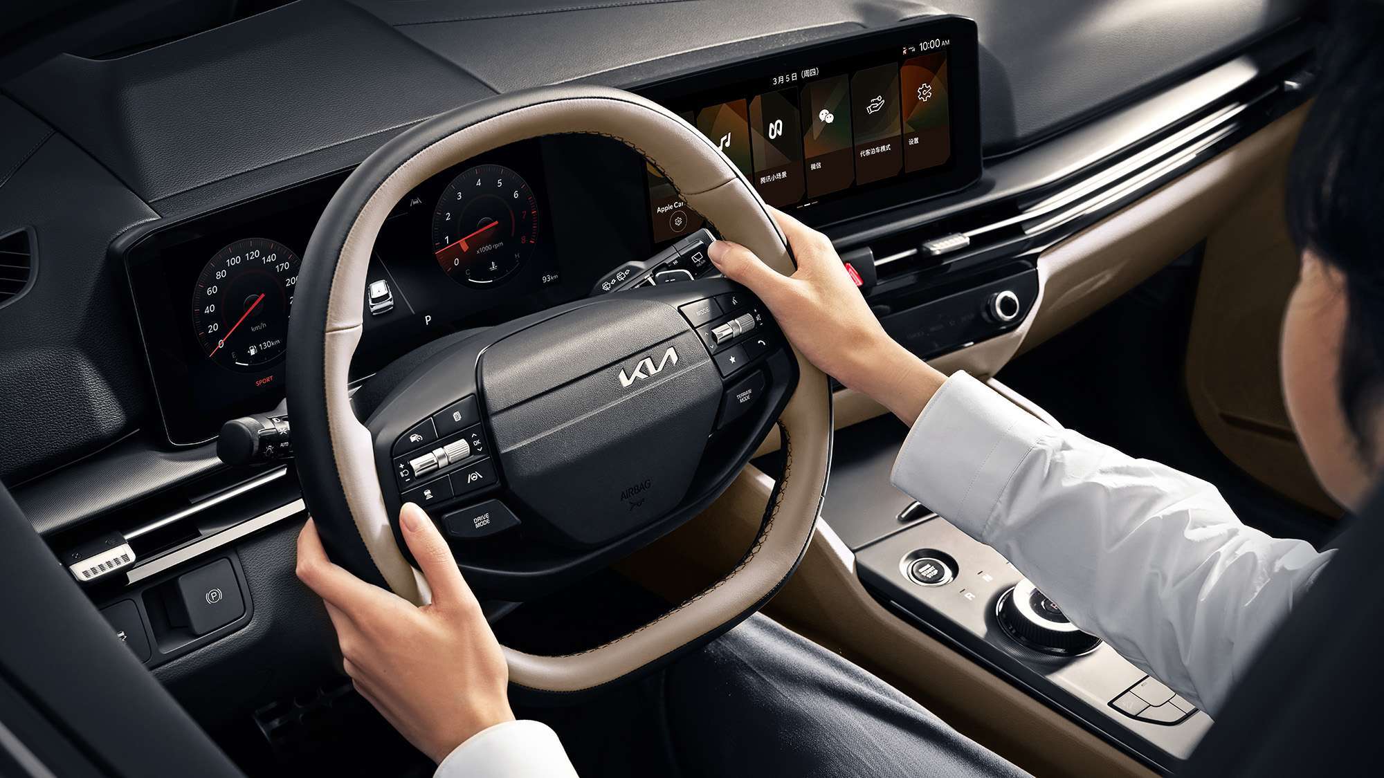 起亚新狮铂拓界首次搭载11英寸HUD抬头显示系统,最高亮度可达12000尼特。双12.3英寸仪表盘与多媒体屏幕组成超宽域曲面屏,搭载全新智能互联娱乐系统ccNC,支持无线CarPlay与CarLife、语音识别、OTA升级等功能。
