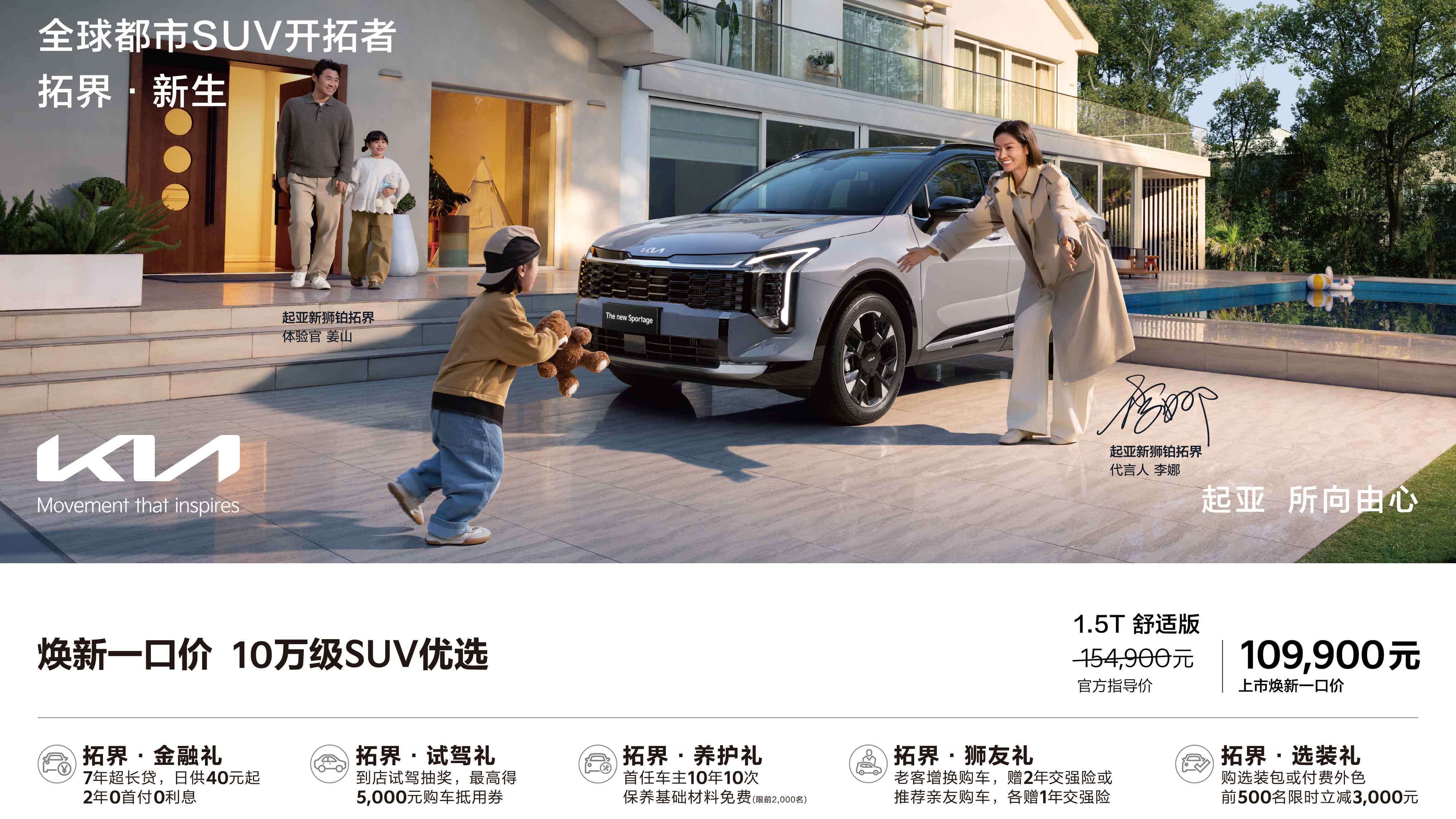 3月5日,悦达起亚新款狮铂拓界正式上市,该车定位紧凑型SUV,共推出7款车型,官方指导价区间15.49万-21.79万元。即日起至4月30日,消费者可享全国统一“焕新一口价”10.99万元起。